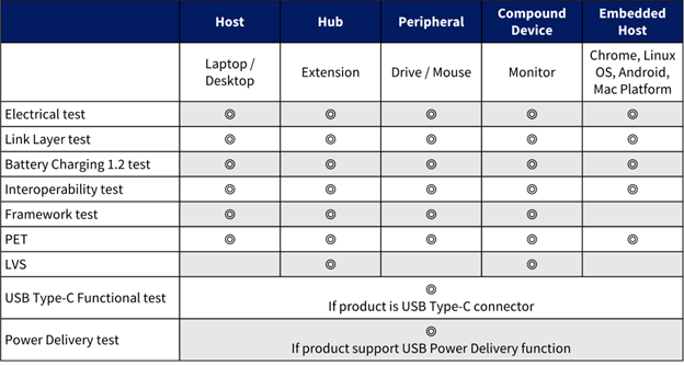 USB Certification test items for general products