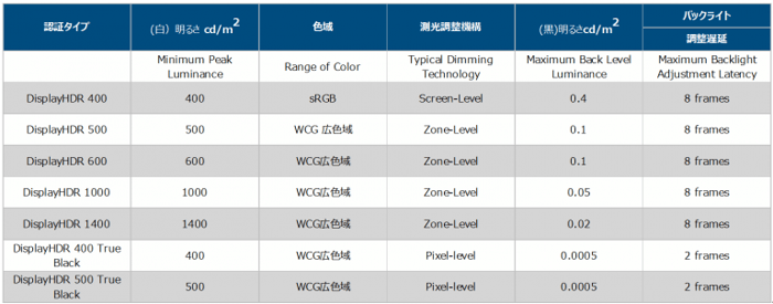 注)DisplayPortまたはAlternate-mode機能をサポートする製品の場合、DisplayHDR資格を取得する前にDisplayPort認証試験に合格する必要があります。